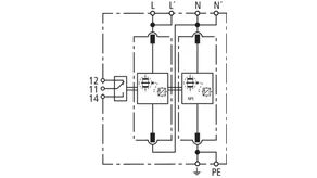Modulární kombinovaný svodič pro jednofázové sítě TN 230 V (zapojení 2+0); v provedení FM s bezpotenciálovým kontaktem dálkové signalizace.