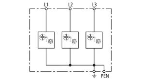| Bleskový proud (10/350 µs) [L1+L2+L3-PEN] (Itotal ) | 22,5 kA |