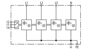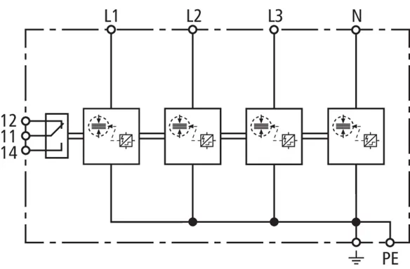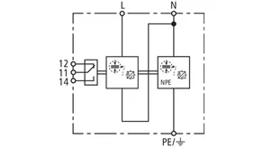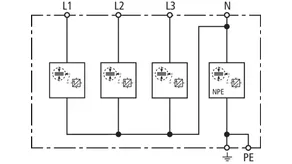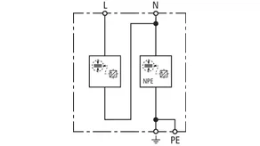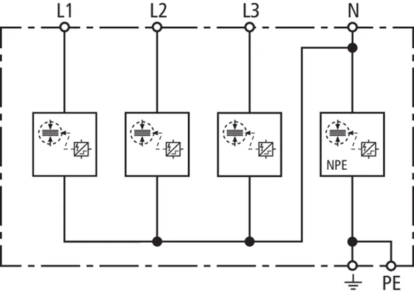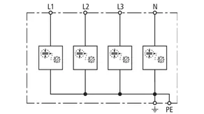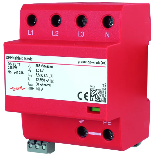 Kompletně zapojený kombinovaný svodič s optimalizovaným použitím pro sítě TT a TN-S, určený pro instalaci do hlavního přívodu napájení (zapojení 3+1) pro obytné budovy bez hromosvodu (také s nadzemním přívodem napájení); s bezpotenciálovým kontaktem dálkové signalizace.