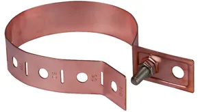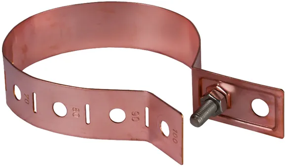 Svorky/objímky na potrubí pro připojení okapových svodů k uzemnění nebo systému vyrovnání potenciálů při působení bleskového proudu podle ČSN EN 62305-3.