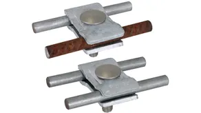 Držák vedení k upevnění podélného uzemňovacího vodiče na kamenných gabionech nebo tyčových plotech.