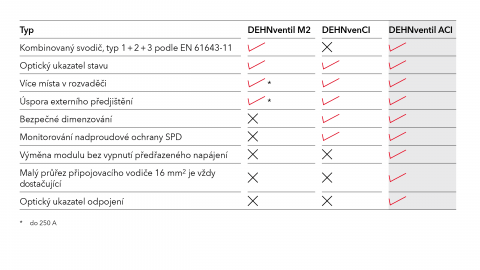 DEHN je již více než 100 let symbolem inovací a technického pokroku. Díky svodičům CI a ACI vytvořila společnost DEHN prostorově úsporná řešení pro moderní ochranu před přepětím. CI je zkratka pro Circuit Interruption (přerušení obvodu) a znamená, že optimálně dimenzovaná pojistka je již integrována v SPD (zařízení na ochranu před přepětím). Díky technologii ACI (Advanced Circuit Interruption), která byla představena v roce 2018, byla tato pojistka nahrazena kombinací spínače a jiskřiště. Díky těmto a dalším inovativním vlastnostem je DEHNventil ACI nejjednodušším a nejbezpečnějším řešením. Přehled našich tříd svodičů: