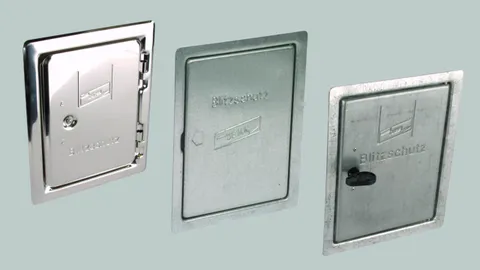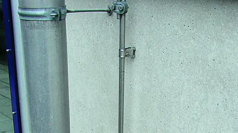Erdeinführungsstangen, Anschlussfahnen und Trennstellen zur Verbindung der Ableitung mit der Erdungsanlage.