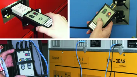 Spannungsprüfsystem zum allpoligen Feststellen der Spannungsfreiheit an der Arbeitsstelle für Schaltanlagen mit HR- oder LRM-Messbuchsen.