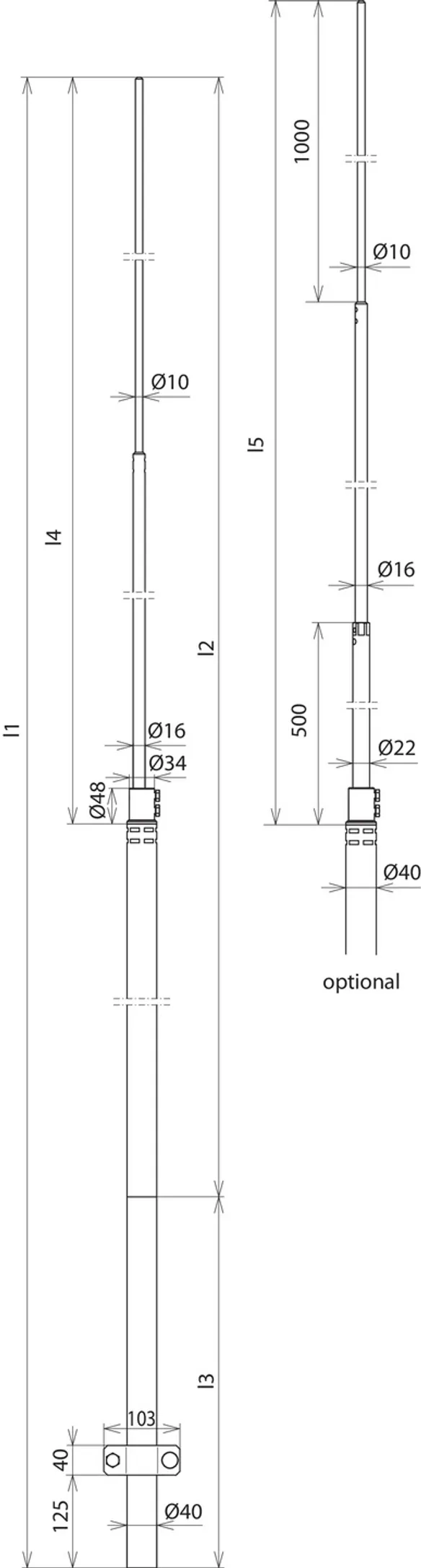 | Max. volná délka s jímací tyčí (l2) | 4000 mm |