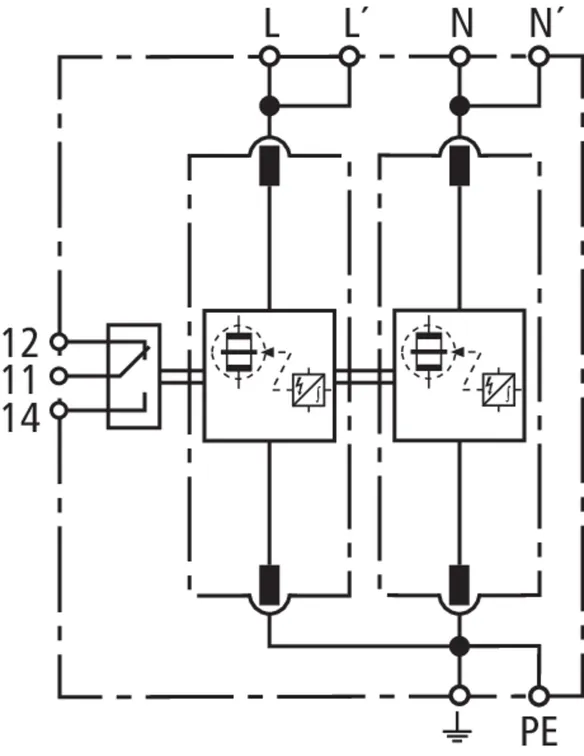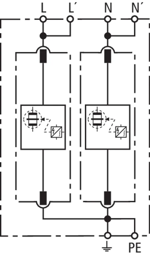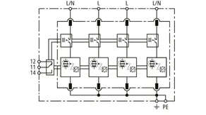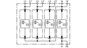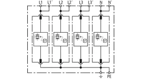 Sada sestávající ze zásuvných svodičů bleskových proudů a přepětí včetně izolované propojovací lišty pro použití v systémech střídačů s aktivní technologií anti-PID s max. hodnotou DC offsetu 750 V DC. Zapojení uzemňovací soustavy podle IEC 60364-4-44, tabulka 44.A1 – RE a Z a také RE a RA jsou připojené.