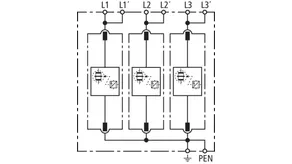| Bleskový proud (10/350 µs) [L1+L2+L3-PEN] (Itotal ) | 75 kA |