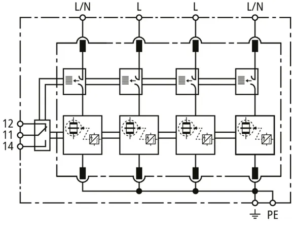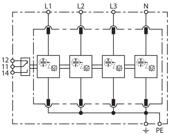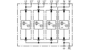 Sada sestávající ze zásuvných svodičů bleskových proudů a přepětí včetně izolované propojovací lišty pro použití v systémech střídačů s aktivní technologií anti-PID s max. hodnotou DC offsetu 750 V DC. Zapojení uzemňovací soustavy podle IEC 60364-4-44, tabulka 44.A1 – RE a Z a také RE a RA jsou připojené.