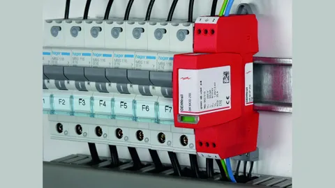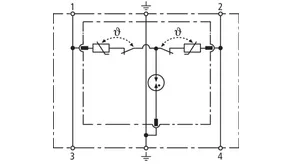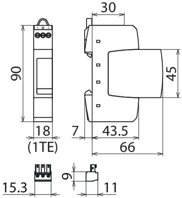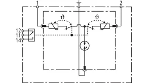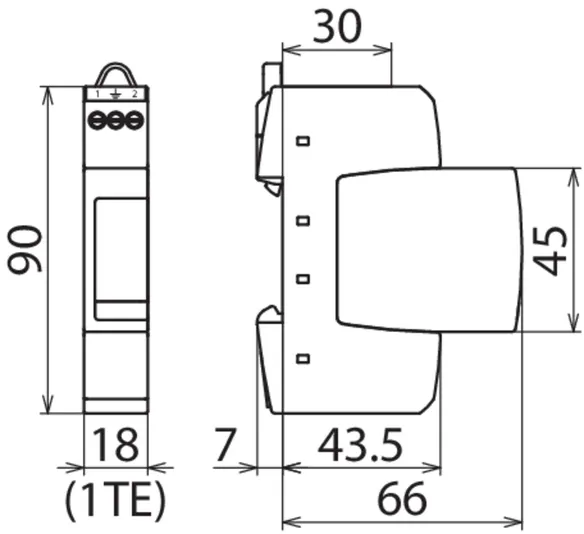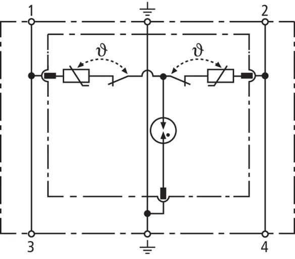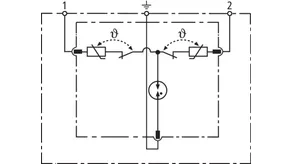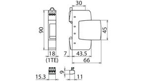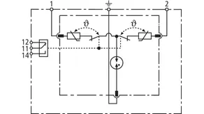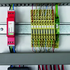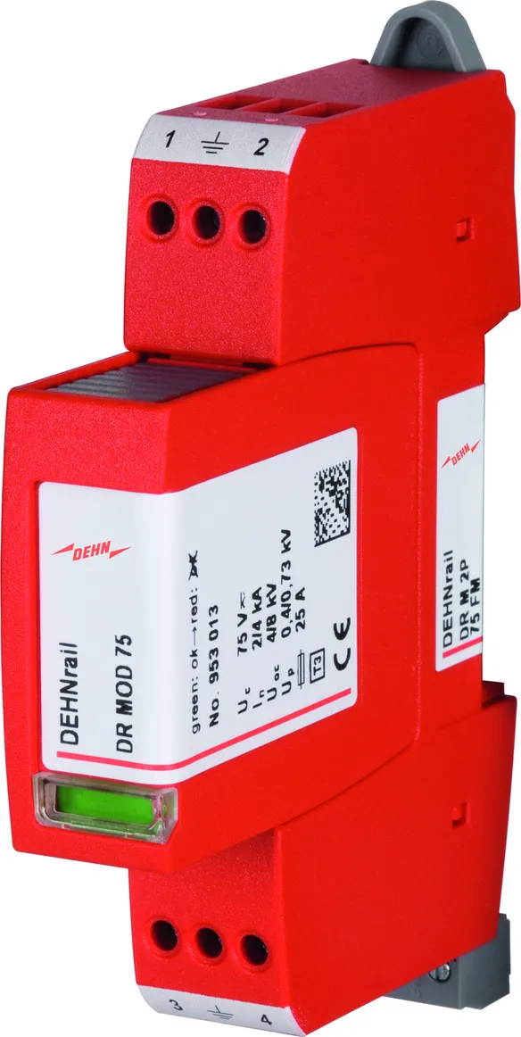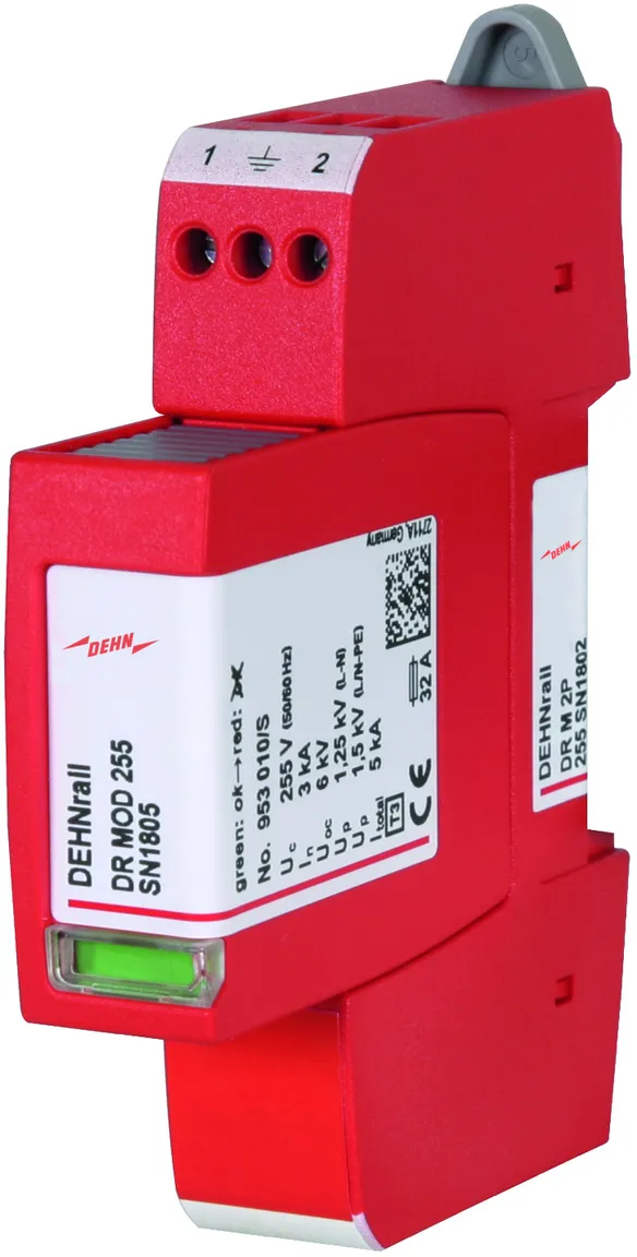 - Dvoupólový svodič přepětí složený ze základního dílu a zásuvného ochranného modulu