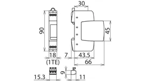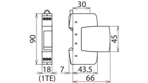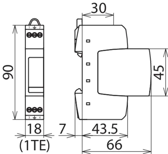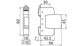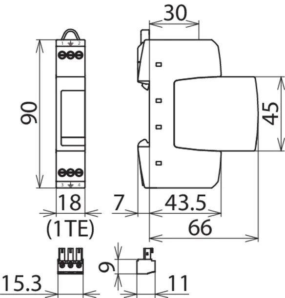 - Úzká konstrukce (šířka jednoho modulu) podle DIN 43380