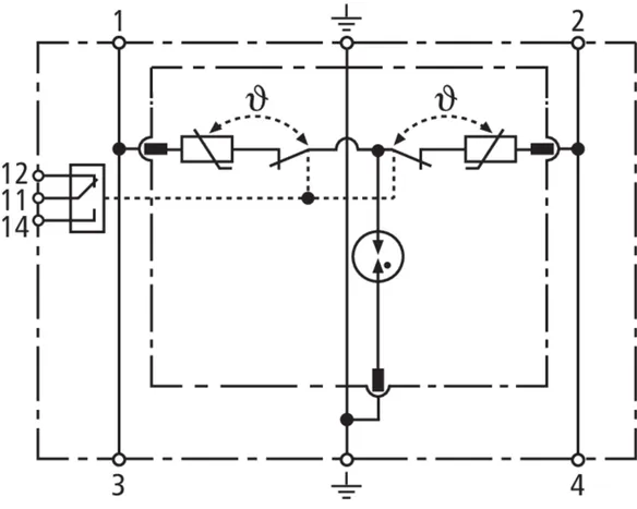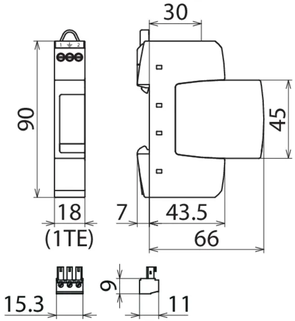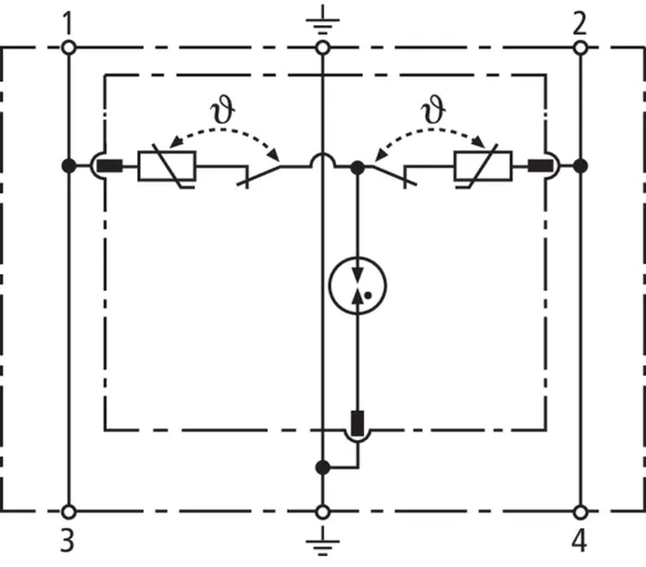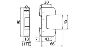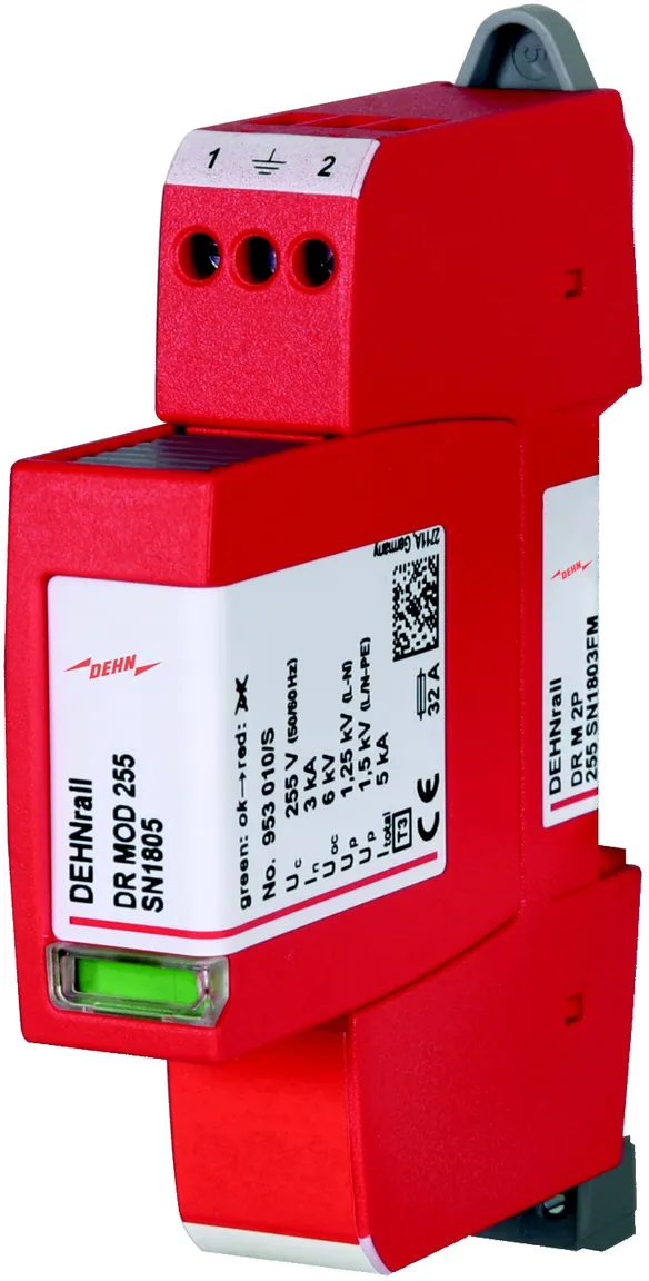 - Dvoupólový svodič přepětí složený ze základního dílu a zásuvného ochranného modulu