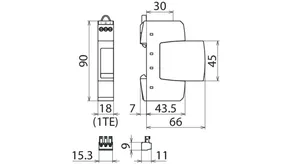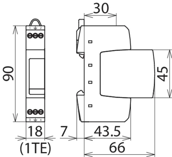 - Úzká konstrukce (šířka jednoho modulu) podle DIN 43380