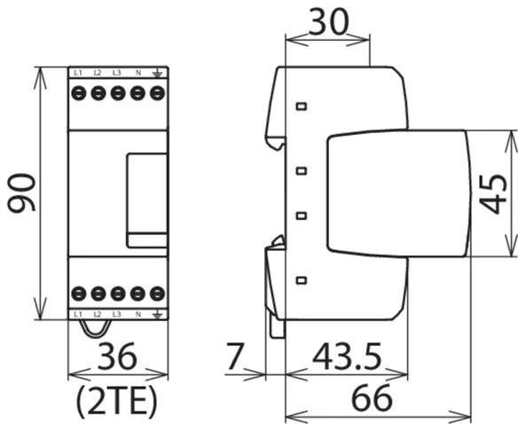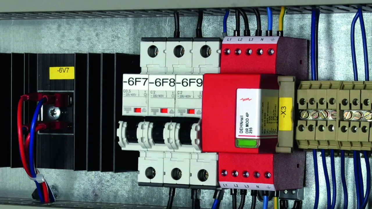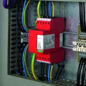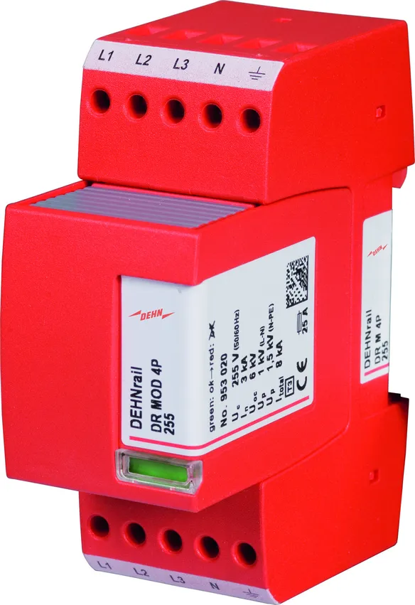 - Čtyřpólový svodič přepětí složený ze základního dílu a zásuvného ochranného modulu