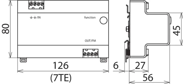 - Optický ukazatel provoz (zelená) a bezpotenciálový kontakt dálkové signalizace pro ukazatel poruchy