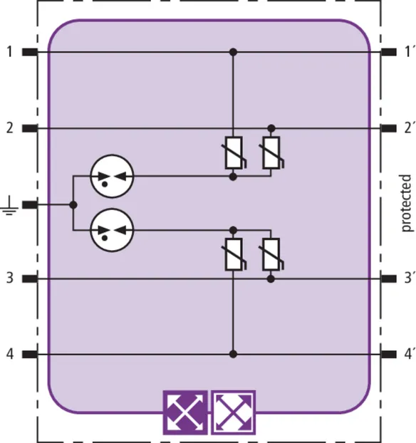 - Všechny ochranné součástky jsou integrovány v zásuvném modulu
