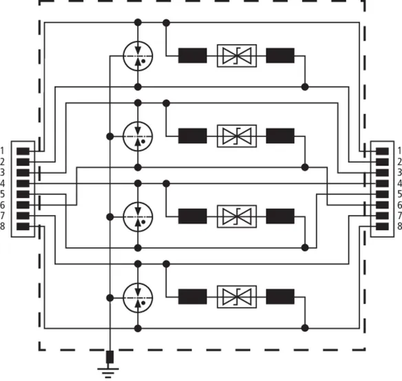 Univerzální, prostorově úsporný svodič bleskových proudů o šířce 19 mm a konektory RJ45 pro vyrovnání potenciálů v ochraně před bleskem. Chrání aplikace se strukturovanou kabeláží podle třídy D do 100 MHz, např. Industrial Ethernet, datové distributory, digitální kamerové systémy, Power over Ethernet (IEEE 802.3 konformita do 4PPoE) a rozhraní na bázi Ethernetu obecně. Všechny páry vodičů jsou chráněny výkonnými bleskojistkami. Plně stíněný design adaptéru se zásuvkami RJ45, montáž na DIN lištu. S přídavným připojením pomocí šroubu na boku krytu pro volitelné uzemnění.