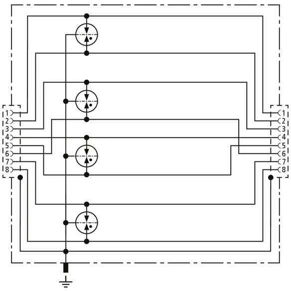 Univerzální svodič pro sítě Industrial Ethernet, Power ower Ethernet (PoE+ podle IEEE 802.3at do 57 V) a podobné aplikace se strukturovanou kabeláží podle třídy E do 250 MHz. Chrání všechny páry žil prostřednictvím výkonných plynových bleskojistek a maticí filtrů nastavenou pro každý pár žil. Plně stíněné provedení s patchkabely pro uchycení na instalační lištu (pro ethernet do 1 Gbit).