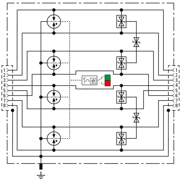 Univerzální svodič pro sítě Industrial Ethernet, Power ower Ethernet (IEEE 802.3 konformita do PoE++/4PPoE) a podobné aplikace se strukturovanou kabeláží podle třídy D do 100 MHz. Chrání všechny páry žil prostřednictvím výkonných plynových bleskojistek. Provedení se zdířkami, pro montáž na instalační lištu.