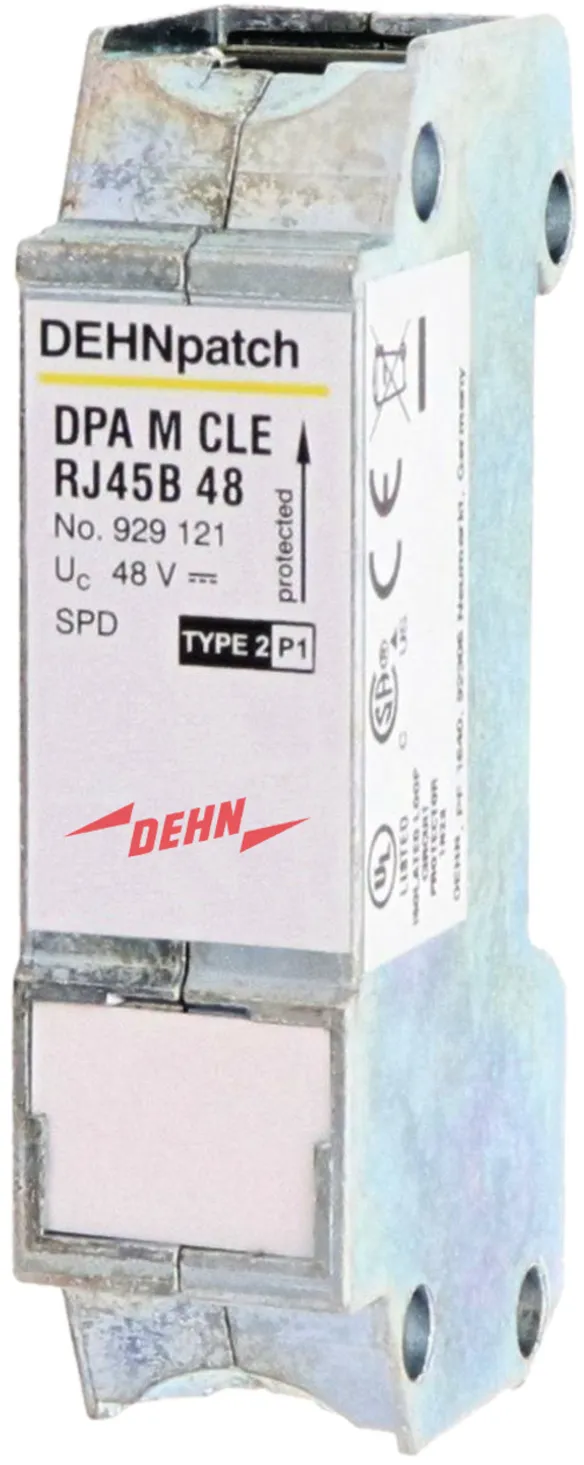 Univerzální, prostorově úsporný kombinovaný svodič o šířce 19 mm a konektory RJ45 s ukazatelem stavu pro snadnou údržbu. Chrání aplikace se strukturovanou kabeláží podle třídy EA do 500 MHz, např. Industrial Ethernet, datové distributory, digitální kamerové systémy, Power over Ethernet (IEEE 802.3 konformita do 4PPoE) a rozhraní na bázi Ethernetu obecně. Všechny páry vodičů jsou chráněny výkonnými bleskojistkami a ochrannými diodami mezi signálovými vodiči resp. páry vodičů. Plně stíněný design adaptéru se zásuvkami RJ45, montáž na DIN lištu. S přídavným připojením pomocí šroubu na boku krytu pro volitelné uzemnění.