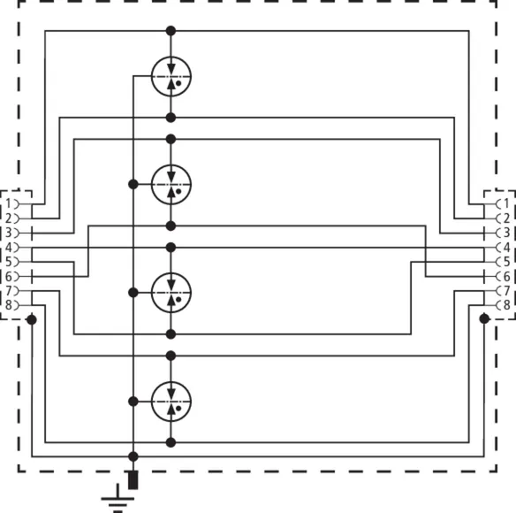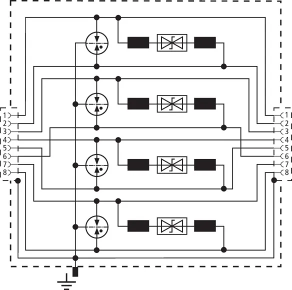 Univerzální svodič pro sítě Industrial Ethernet, Power ower Ethernet (PoE+ podle IEEE 802.3at do 57 V) a podobné aplikace se strukturovanou kabeláží podle třídy E do 250 MHz. Chrání všechny páry žil prostřednictvím výkonných plynových bleskojistek a maticí filtrů nastavenou pro každý pár žil. Plně stíněné provedení s patchkabely pro uchycení na instalační lištu (pro ethernet do 1 Gbit).