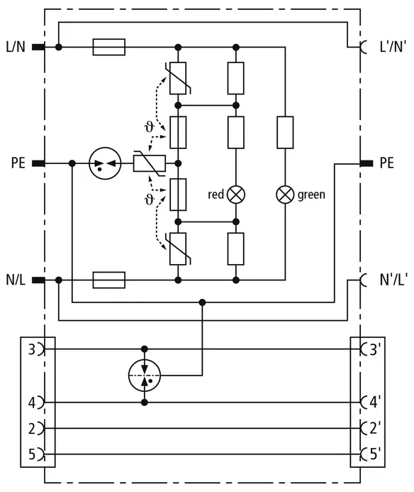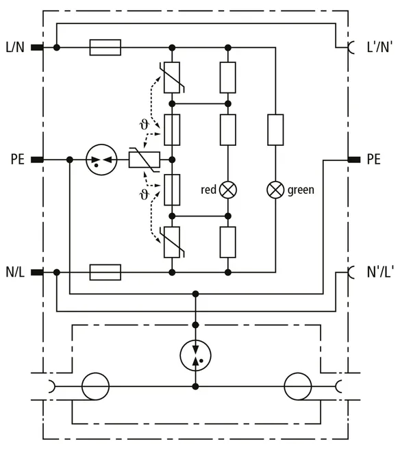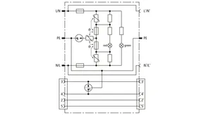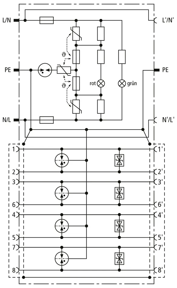 Kombinovaná přepěťová ochrana chrání napájení a datový vstup komponentů LAN, zapojených do sítě Ethernet. Ze strany datové sítě jsou zapojeny všechny páry žil, přiřazených pinům pro sítě Ethernet.