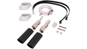 Připojovací sada vodiče HVI power na podpůrnou trubku GFK/Al pro vodiče HVI power je složena z připojovacích prvků, závitových čepů, připojovacího dílu, teplem smrštitelné bužírky, stahovacích pásků a upevňovacího kroužku s držákem vedení s prořezem (Ø 27 mm).