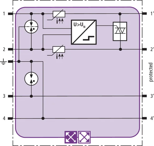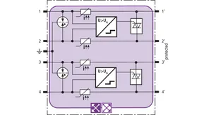 Prostorově úsporný modul kombinovaného svodiče s technologií actiVsense a čipem RFID-LifeCheck chrání 2 páry žil symetrických rozhraní s galvanickým oddělením. Vedení mohou mít stejné nebo rozdílné provozní napětí. Svodič automaticky rozpozná nosné provozní napětí signálu a nastaví podle něj optimální ochrannou úroveň.