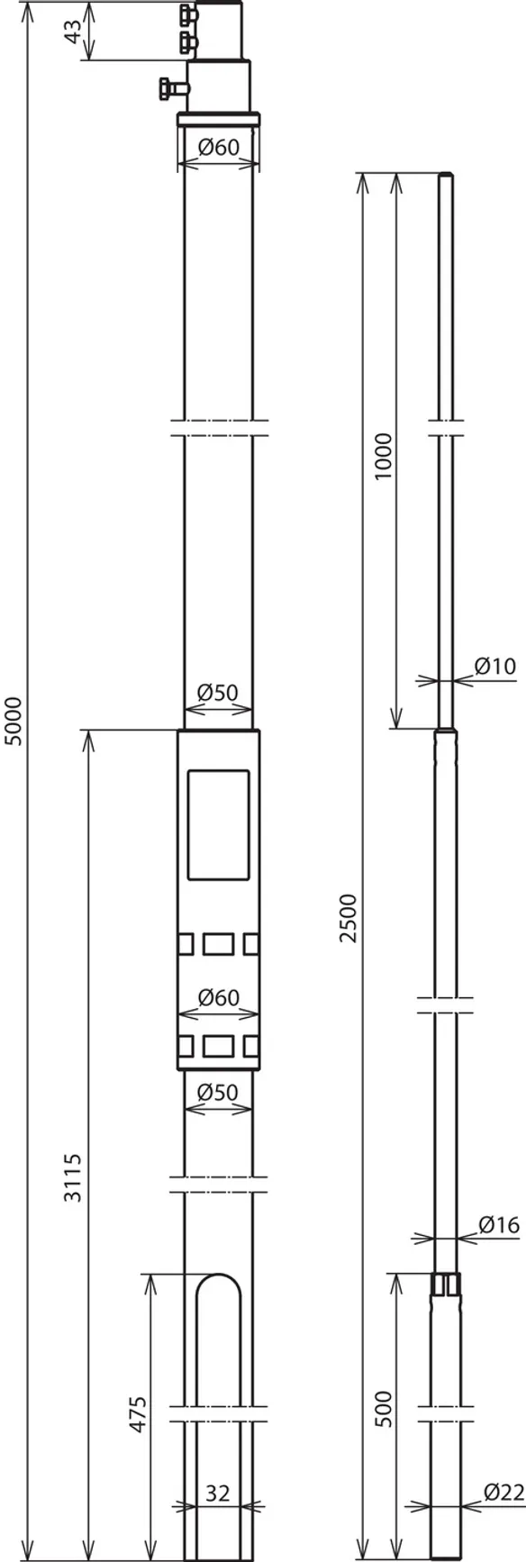| Délka podpůrné trubky | 5000 mm |