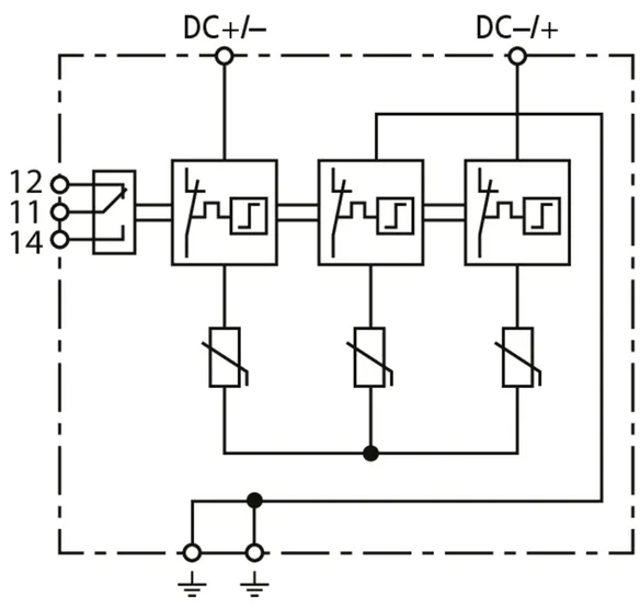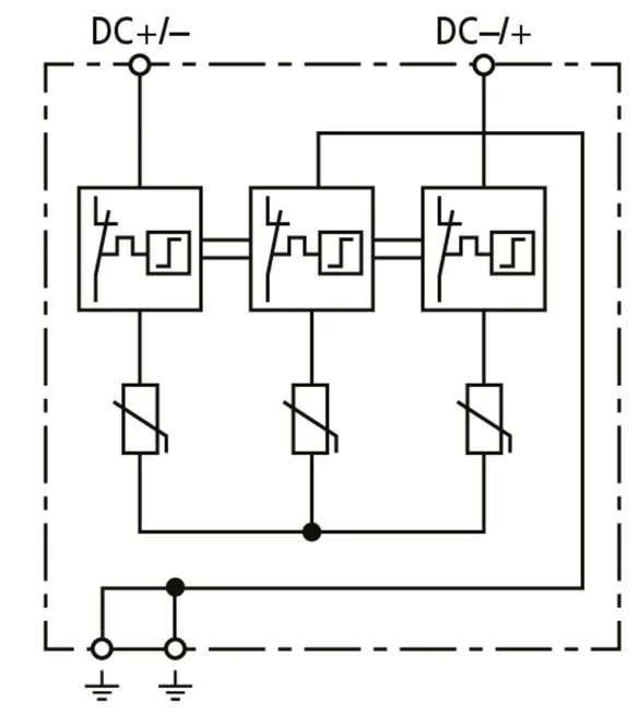 | Celkový impulzní proud (10/350 µs) [DC+/DC- -> PE] (Itotal ) | 12,5 kA |