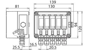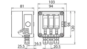 | Maximální impulzní proud (8/20 µs) [(DC+/DC-) --> PE] (Imax ) | 25 kA |