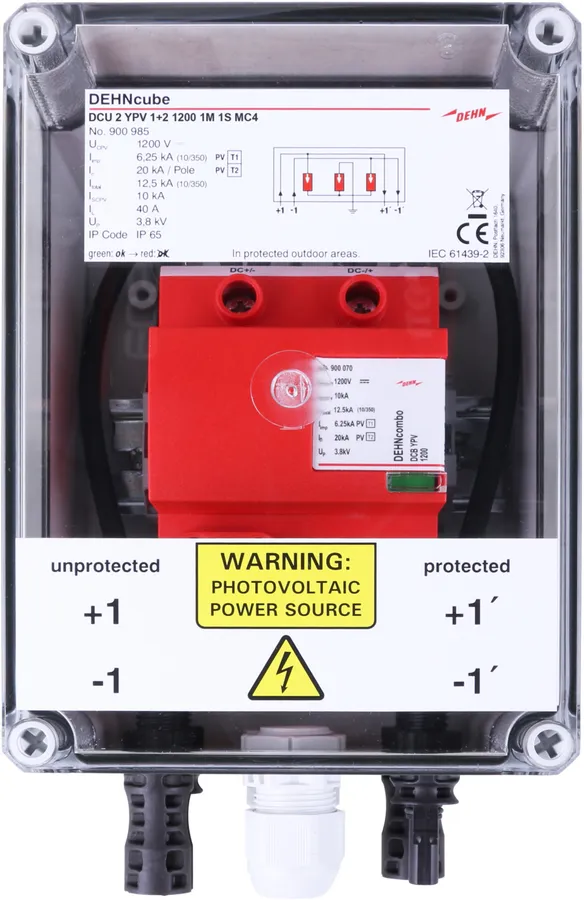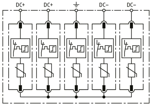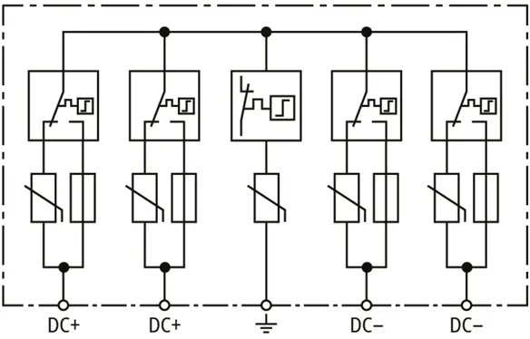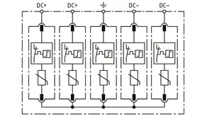 | Jmenovitý impulzní proud (8/20 µs) [(DC+/DC-) --> PE] (In ) | 20 kA |