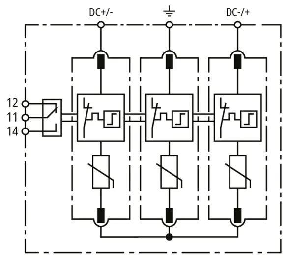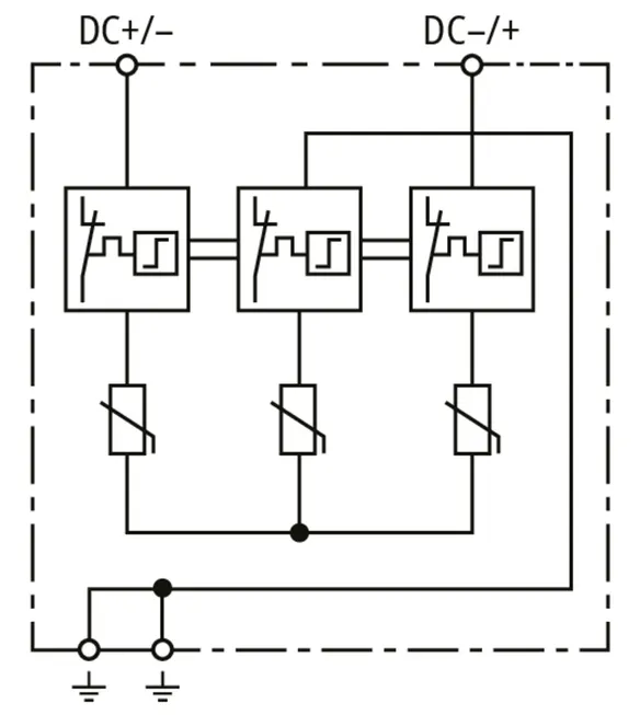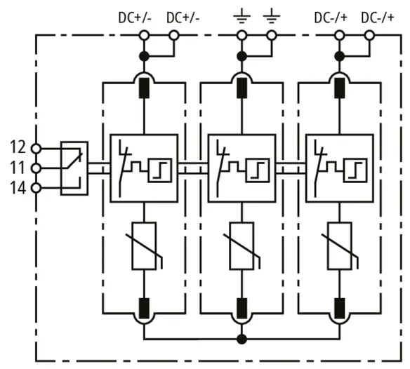 | Jmenovitý impulzní proud (8/20 µs) [(DC+/DC-) --> PE] (In ) | 12,5 kA |