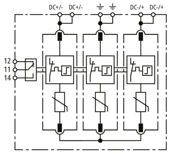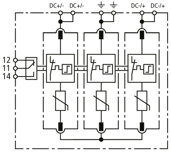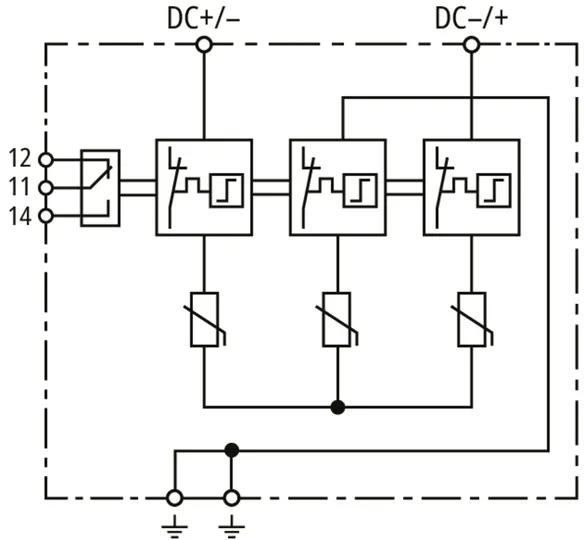 | Jmenovitý impulzní proud (8/20 µs) [(DC+/DC-) --> PE] (In ) | 12,5 kA |