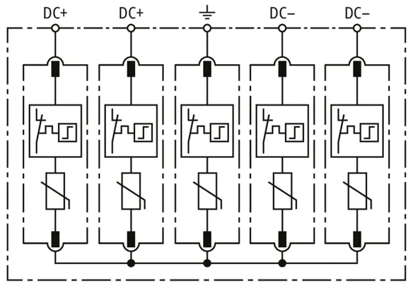 | Jmenovitý impulzní proud (8/20 µs) [(DC+/DC-) --> PE] (In ) | 12,5 kA |