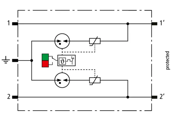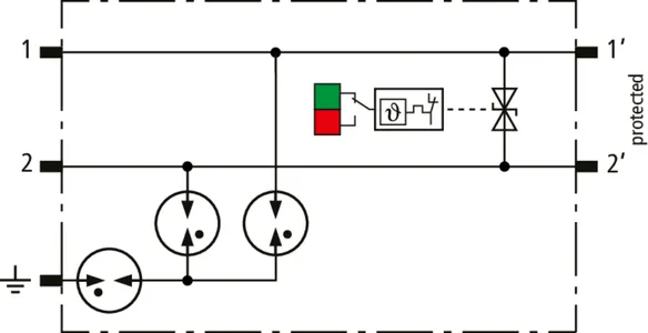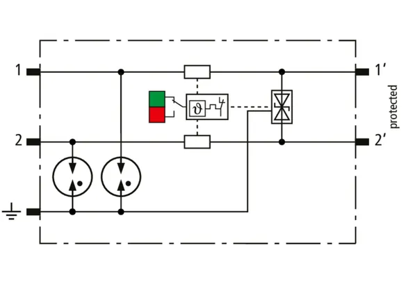 Prostorově úsporný, modulární kombinovaný svodič o šířce 6 mm a připojovací technologií push-in, s ukazatelem stavu, pro ochranu 1 páru vedení v systémech 24 V DC. Instalace je možná i při uzemněném záporném pólu. Integrované odpory PTC umožňují bezpečné resetování svodiče po působení rušení v obvodech se zkratovými proudy do 40 A. S rozpojením signálových cest pro účely údržby.