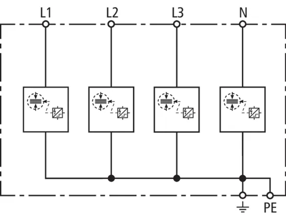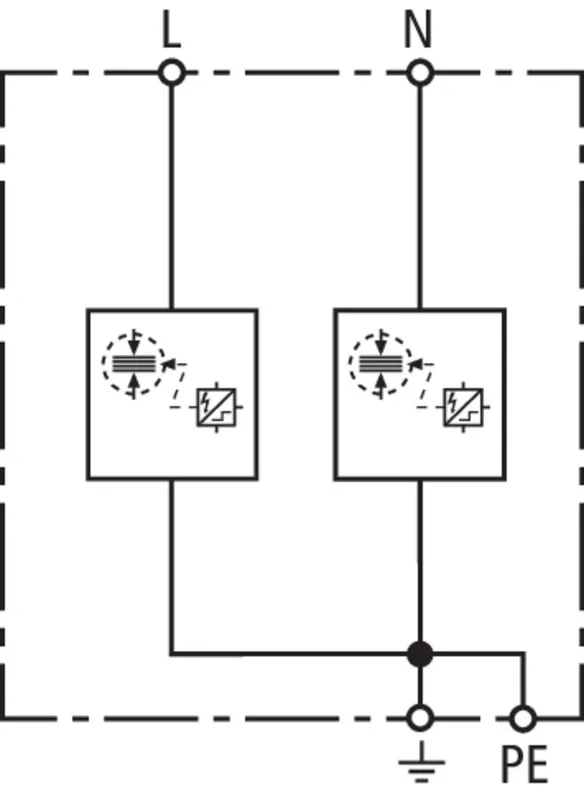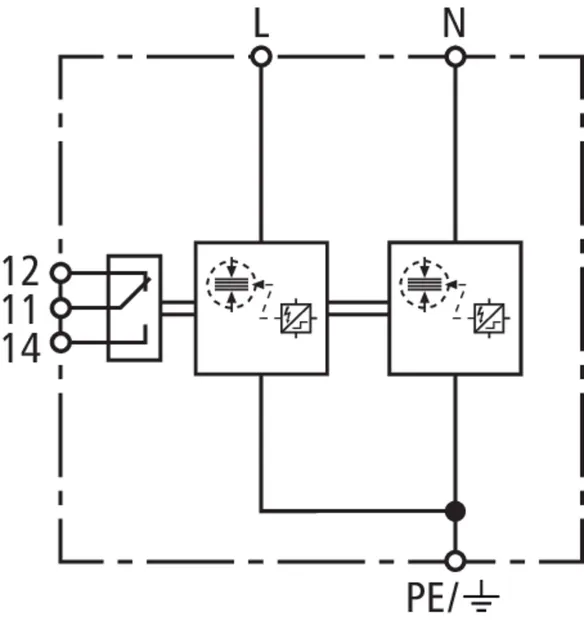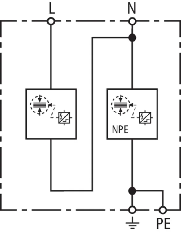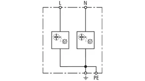 Kompletně zapojený kombinovaný svodič s optimalizovaným použitím pro sítě TT a TN-S, určený pro instalaci do hlavního přívodu napájení (zapojení 3+1) pro obytné budovy bez hromosvodu (také s nadzemním přívodem napájení); s bezpotenciálovým kontaktem dálkové signalizace.