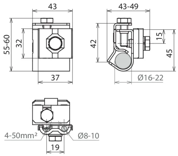 | Připojení (drát/slaněný vodič) | 16 - 50 mm2 |
