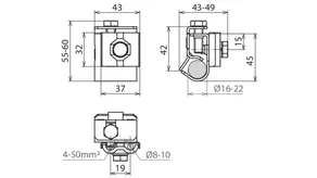 | Připojení (drát/slaněný vodič) | 16 - 50 mm2 |