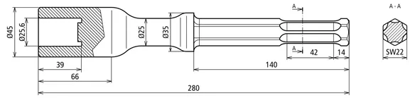 | Úchyt | šestihran SW22 x 108 mm |