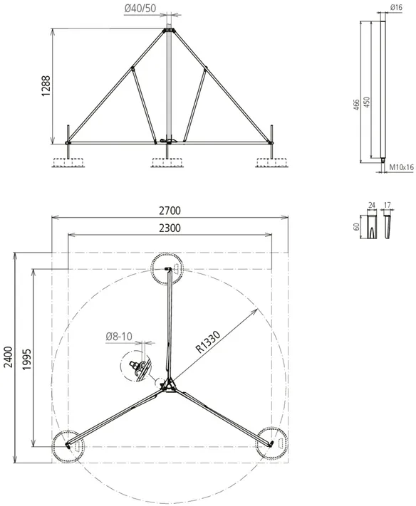 | Plošné rozměry stojanu | 960 x 960 mm |