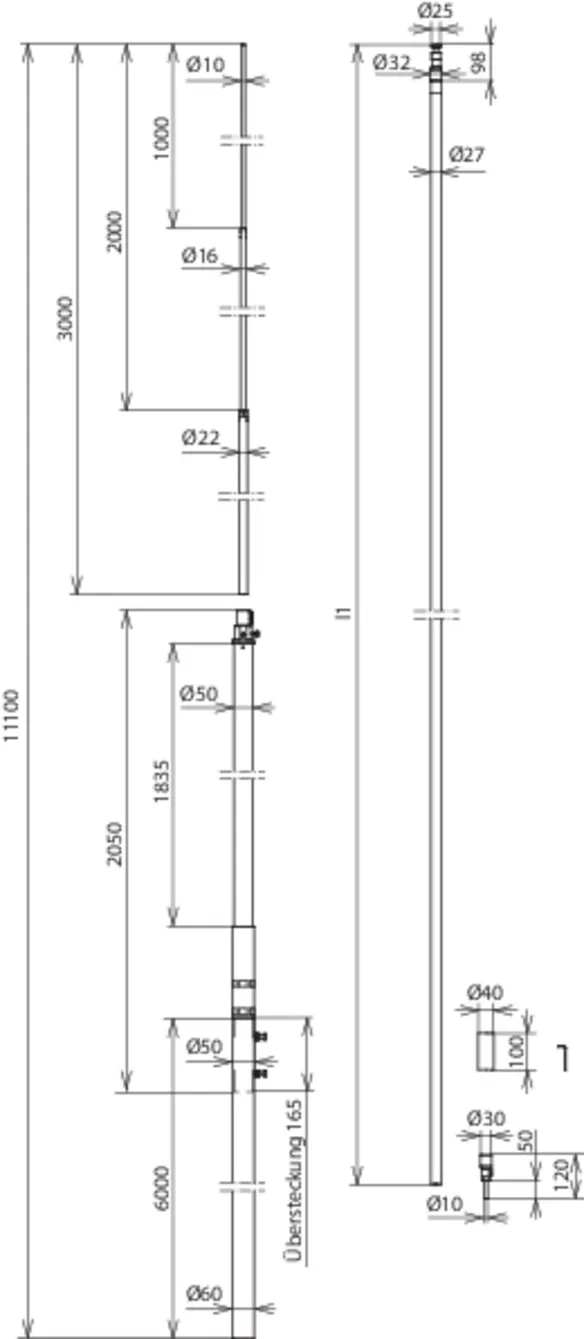 Nejvyšší celková délka vodiče HVI power je 11,0 m pro třídu ochrany před bleskem LPL I.