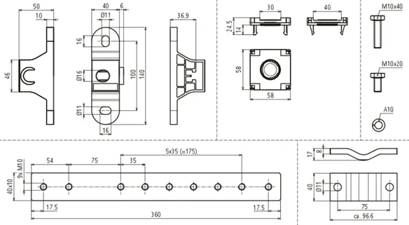 | Připojení drátu/pásku | 1x pásek 30/40 mm nebo 1x drát prům. 10 mm |