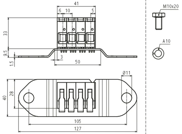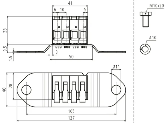 | Max. zkratový proud (AC 50 Hz / DC / 5 s) FeZn 30x3,5 mm / 40x5 mm | 1500 A/T4 |