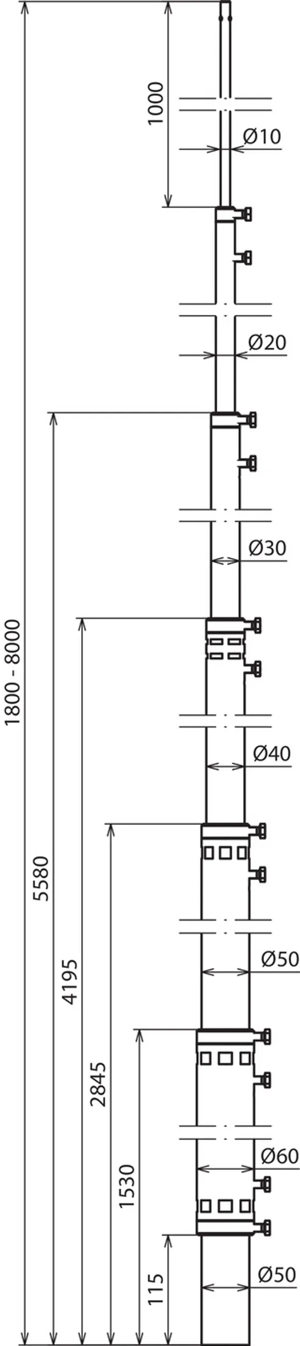 | Stožár (Ø - délka) | 50/60/50/40/30/20-7000 mm |