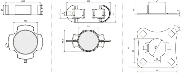 Tento připojovací prvek lze použít pro vnější uložení vodiče HVI light plus k podpůrné trubce.