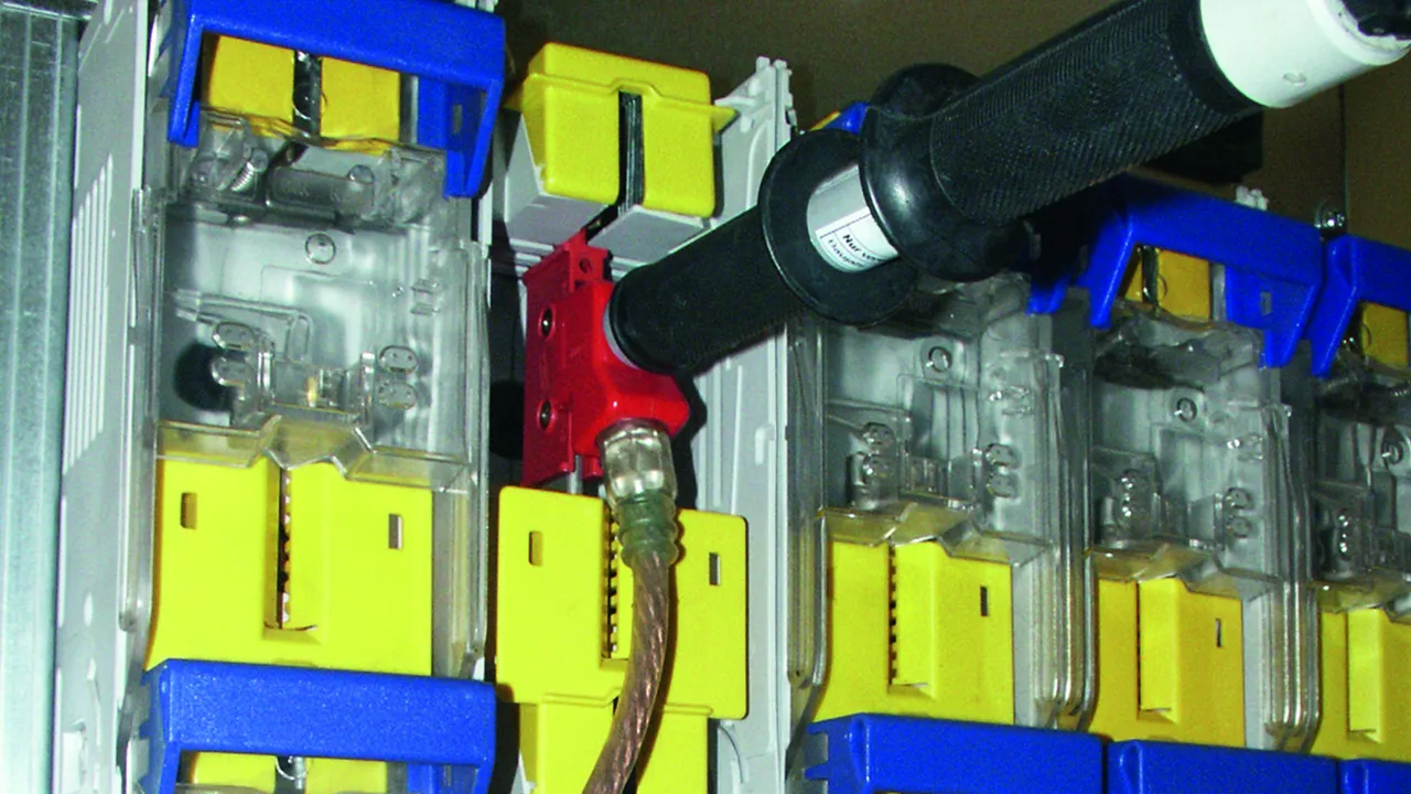 - Sichere Handhabung mit isoliertem Erdungsgriff VI (mit Doppelfunktion), geeignet sowohl zum Einsetzen und Herausnehmen der Erdungspatronen mit T-Anschluss als auch zum Aufschrauben der Erdungs- und Kurzschließvorrichtung (EuK-Vorrichtung)