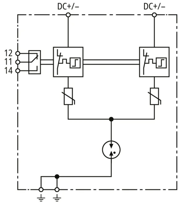 | Total discharge current (10/350 µs) [DC+/DC- -> PE] (Itotal ) | 10 kA |