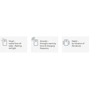 - Triple alarm. Visual, acoustic and haptic warnings prevent penetration of the danger zone.