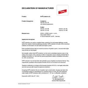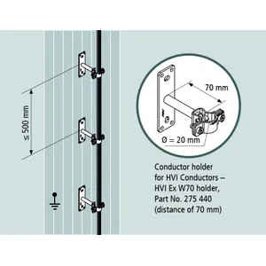 HVI Conductor for installation in explosion hazardous areas Ex zone 1 (gases, vapours, mists) as well as Ex zone 21 (dusts). The special installation conditions safely prevent electric sparks to neighbouring metal parts when lightning current flows through the HVI Conductor.