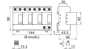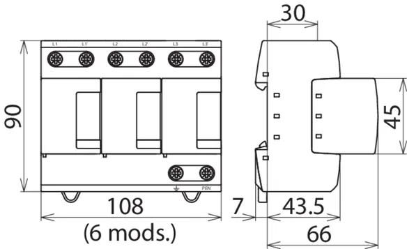 | SPD according to EN 61643-11 / IEC 61643-11 | type 1 + type 2 + type 3 / class I + class II + class III |